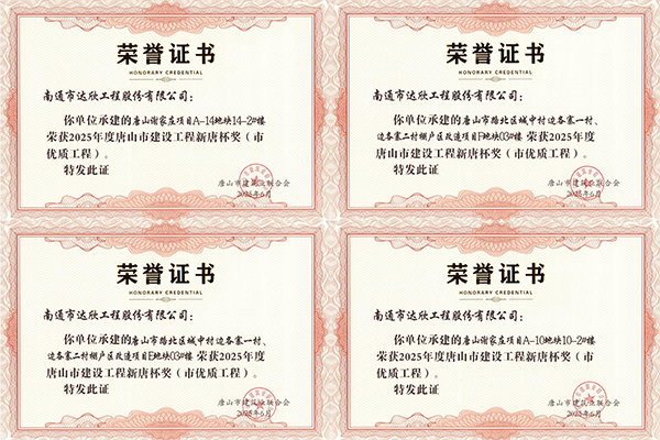 近日,從唐山市建筑業(yè)聯(lián)合會傳來捷報,由第六工程公司承建的唐山市路北區(qū)城中村邊各寨一村、邊各寨二村棚戶區(qū)改造項目E地塊03#樓,唐山市路北區(qū)城中村邊各寨一村、邊各寨二村棚戶區(qū)改造項目F地塊03#樓,唐山謝家莊項目A-10地塊10-2#樓,唐山謝家莊項目A-14地塊14-2#樓4項工程獲得唐山市建筑工程新唐杯獎(市優(yōu)質(zhì)工程)。